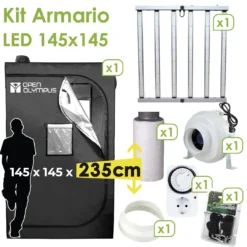 Descubre nuestro catálogo de kits cultivo interior con armario, disponibles en varias medidas de armario. Tanto si necesitas un pequeño kit completo para autoabastecerte, como si buscas una producción mayor, tenemos lo que necesitas: